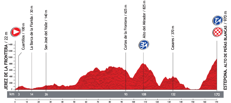 Localitatea de start este cunoscută pentru circuitul de motociclism din apropiere, echipa de fotbal aflată în Segunda Division, dar şi pentru că acolo s-a născut Primo de Rivera, fostul dictator al Spaniei din perioada interbelică. Peñas Blancas (16 kilometri), ascensiunea de la final, îşi va face debutul în Vuelta şi îi va aştepta pe rutieri cu o pantă medie de 6,2% şi maximă de 8,9%.