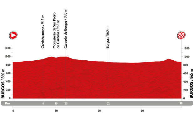 E unicul contratimp individual de la această ediţie, şi spre deosebire de cele din anii anteriori, nu are o căţărare repertoriată. Fiind aproape plat, le va permite specialiştilor, dacă vor mai avea suficiente resurse, să le ia timp serios căţărătorilor. Burgos este o prezenţă mai veche în Vuelta, însă aceasta va fi pentru prima dată când va primi un contratimp.