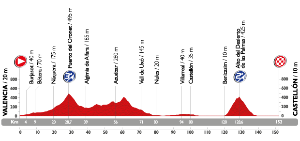 Când mai rămân doar 32 de kilometri din această etapă, plutonul va urca pe Alto del Desierto de las Palmas, o ascensiune de categoria a doua pe care anumite echipe pot duce o trenă ridicată, astfel încât să îi scuture pe sprinterii puri şi să le permită altor rutieri să iasă în evidenţă la final