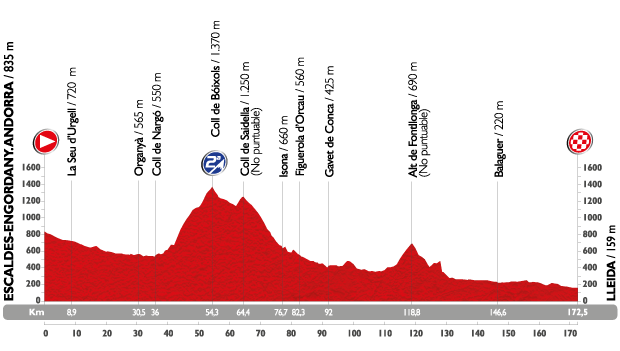 Etapa a Xll-a – Escaledes – Engordany (172,5 kilometri)