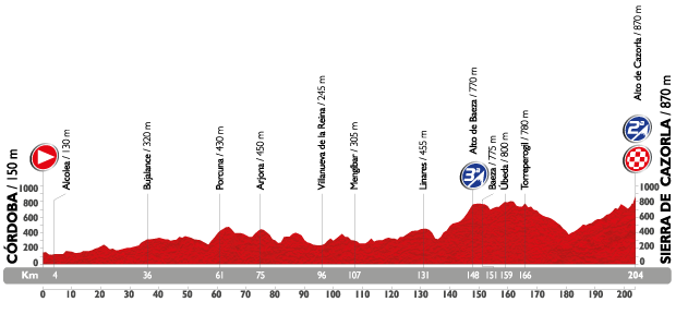 Plutonul va ajunge în provincia Jaen, iar traseul nu va avea niciun metru de plat, fiind în permanenţă valonat. Lucrurile cu adevărat serioase vor începe abia pe final, când îşi va face apariţia Alto de Cazorla, căţărare de categoria a doua, în lungime de 20 de kilometri, dar fără pante dure. Un motiv în plus pentru ca o evadare să reuşească.
