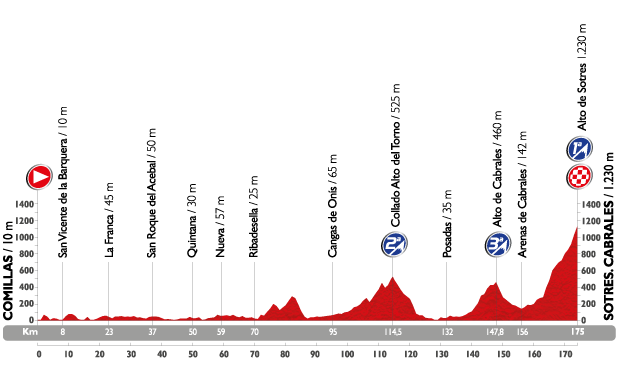 Asturia promite spectacol şi la această ediţie, iar etapa programată în ultima săptămână are toate ingredientele necesare pentru a-l avea. Pe traseul ca un montagne russe sunt înşirate nu mai puţin de şapte căţărări repertoriate, primele cinci fiind de munte mediu. Apoi, ultimii 30 de kilometri vor aduce două căţărări foarte grele, Alto de la Cobertoria (8,1 kilometri, pantă medie 8,5%) şi Alto Ermita de Alba (6,6 kilometri, pantă medie 11,2%). Pe final, drumul va deveni chinuitor, deoarece panta va atinge şi 30%, ceea ce va putea duce la crearea unor diferenţe însemnate.